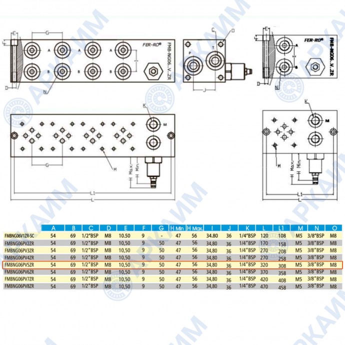 Плита FMBNG06PV5ZR на 5 модуля CETOP 3 / Ду 6 мм с предохранительным клапаном
