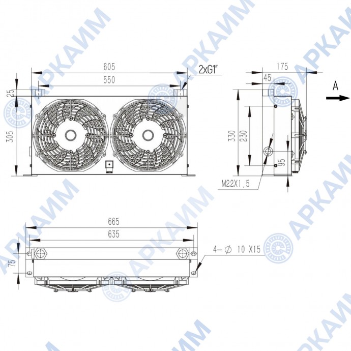Размеры маслоохладителя KY-100TL 220В: