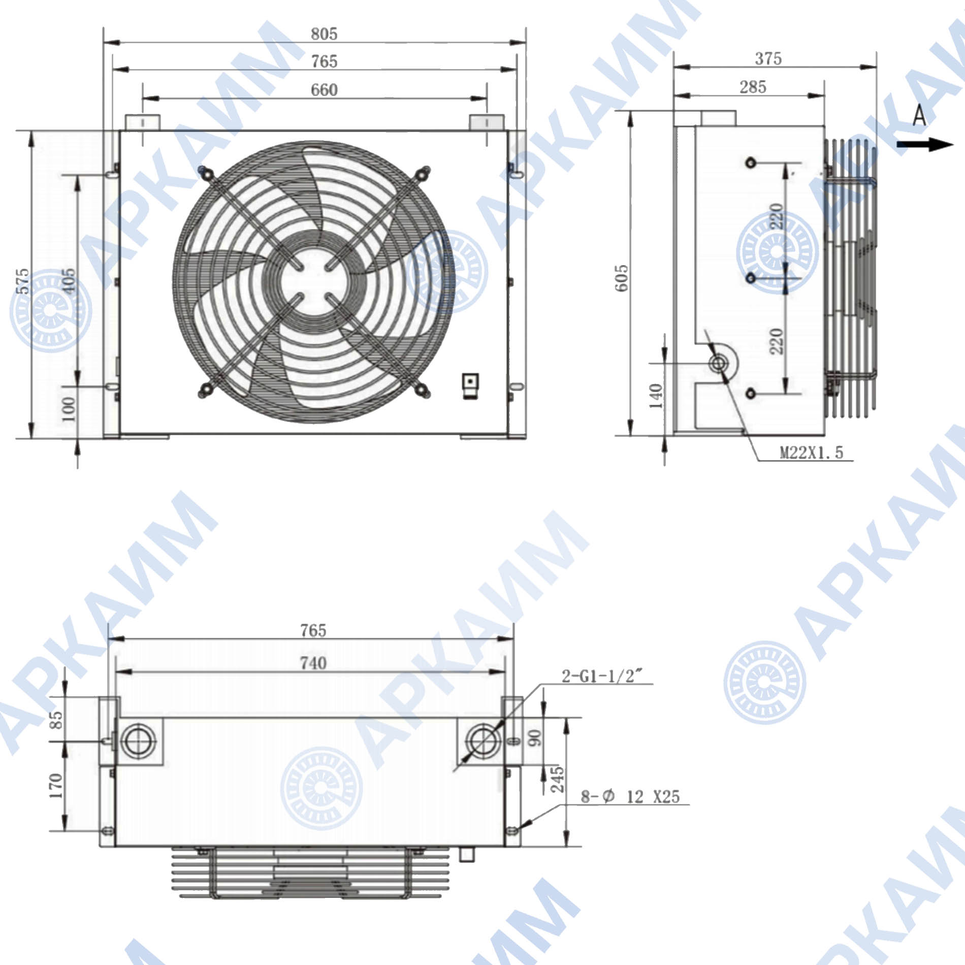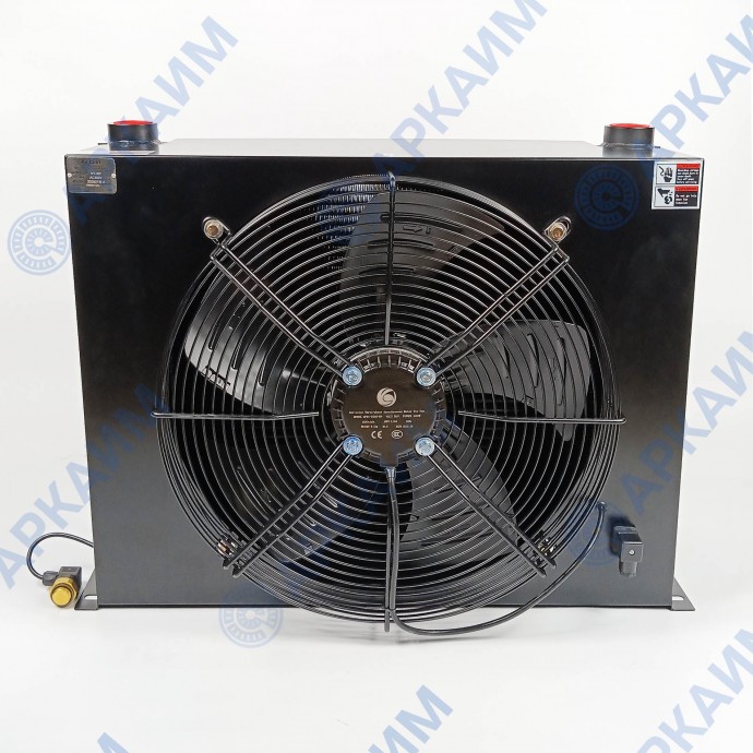 Маслоохладитель KY-300 (AH1670T-CA) 380В - это теплообменник, служащий для поддержания нормальной температуры рабочей жидкости в гидросистеме за счет эффективного отвода лишней тепловой энергии. Гидравлическое масло (или другая жидкость), проходя через обдуваемый радиатор, поступает обратно в систему охлажденной до нужной температуры.
