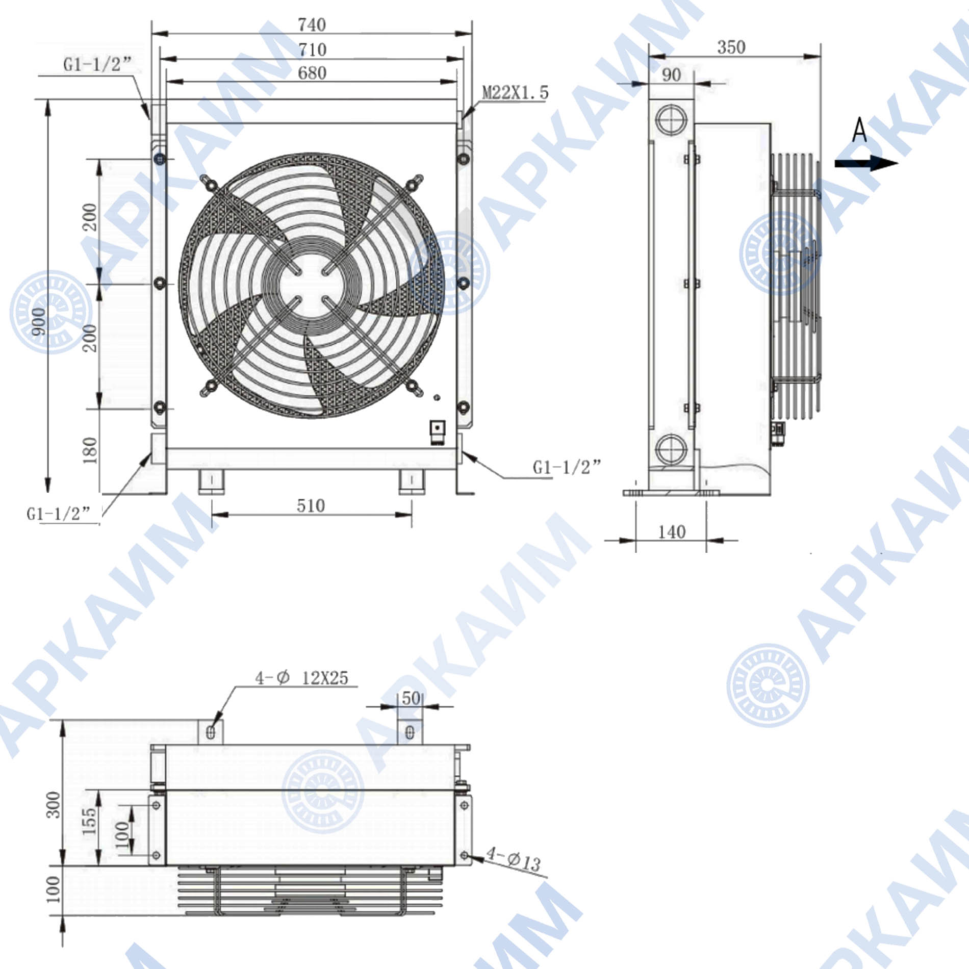 Размеры маслоохладителя KY-400 (AH2090T-CA) 220В: