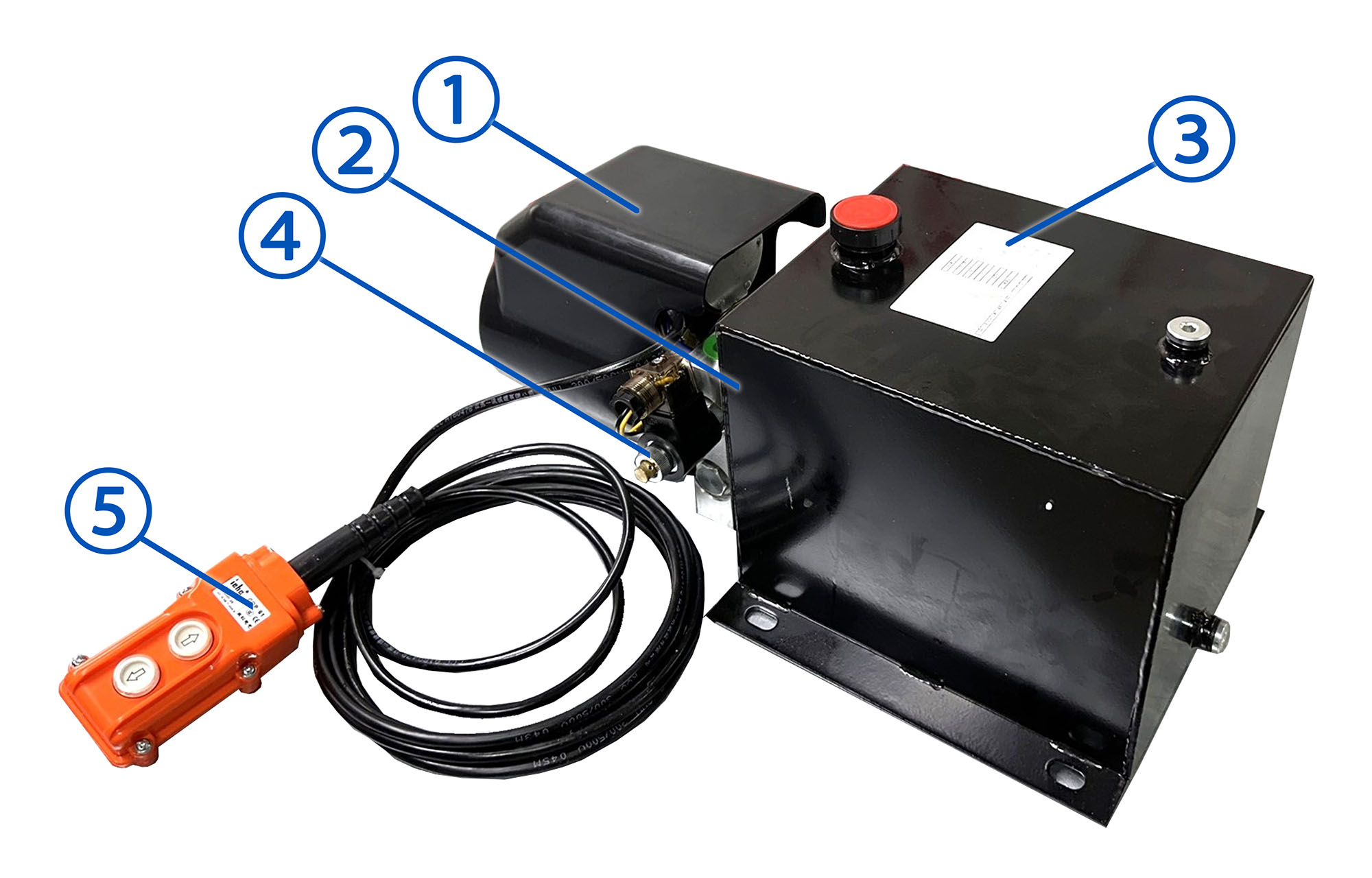 Мини гидростанция подъёма кузова самосвалов HPP/D5-1051 (1.6 кВт., 12 Вольт, 2.10 л/мин., 155 бар., бак 6 литров, пульт управления с кабелем 2.5 м.)