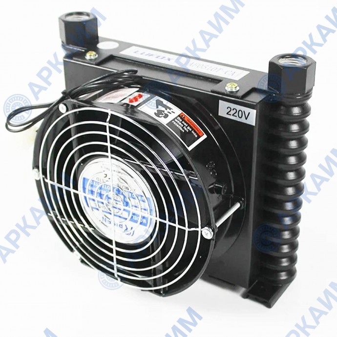 Маслоохладитель AF0510, 380В - это теплообменник, служащий для поддержания нормальной температуры рабочей жидкости в гидросистеме за счет эффективного отвода лишней тепловой энергии. Гидравлическое масло (или другая жидкость), проходя через обдуваемый радиатор, поступает обратно в систему охлажденной до нужной температуры.