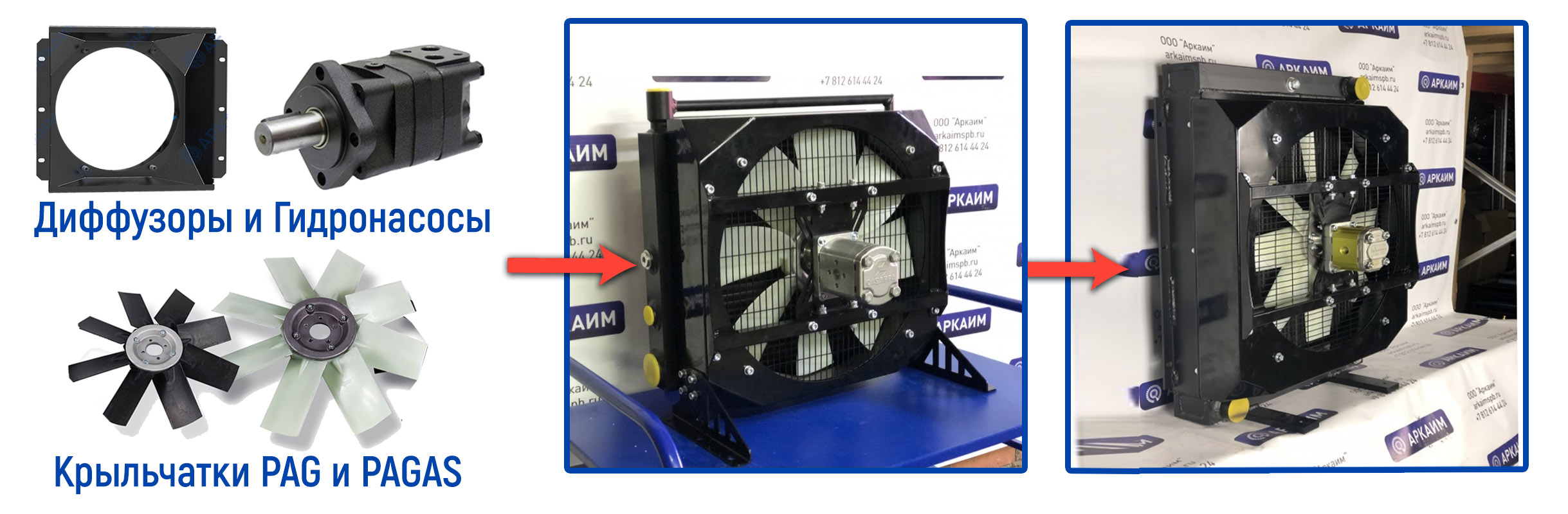 Комплектующие для сборки системы обдува с приводом крыльчатки от гидромотора