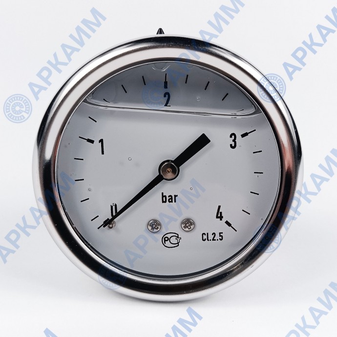Манометр виброустойчивый YN63Z 0/4 на 4 бар, ⌀ 63 мм, G 1/4" осевой, глицериновый