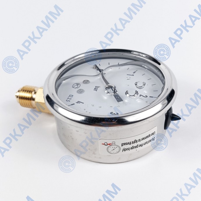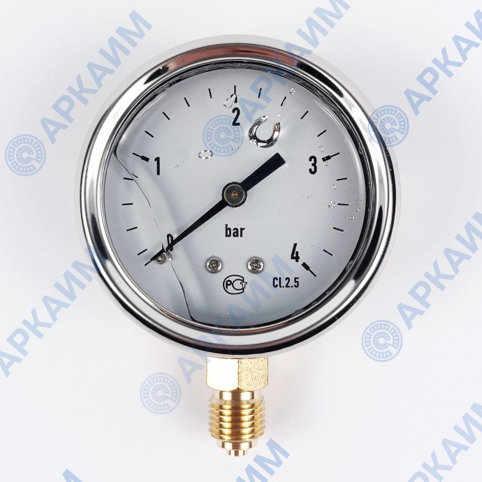 Манометр виброустойчивый YN63Z 0/4 на 4 бар, ⌀ 63 мм, G 1/4" радиальный, глицериновый