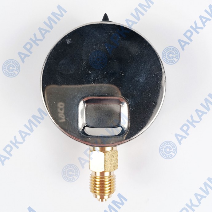 Корпус манометра YN63Z 0/4 изготовлен из стали AISI 304, циферблат и стрелка из алюминия, а штуцер медный. Рабочая температура эксплуатации изделия от -5 °С до +60 °С.