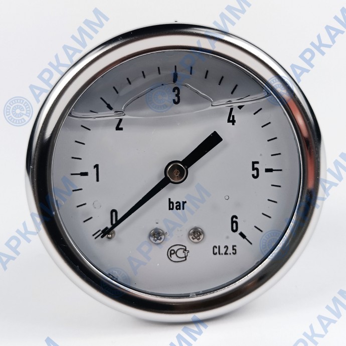 Манометр виброустойчивый YN63Z 0/6 на 6 бар, ⌀ 63 мм, G 1/4" осевой, глицериновый
