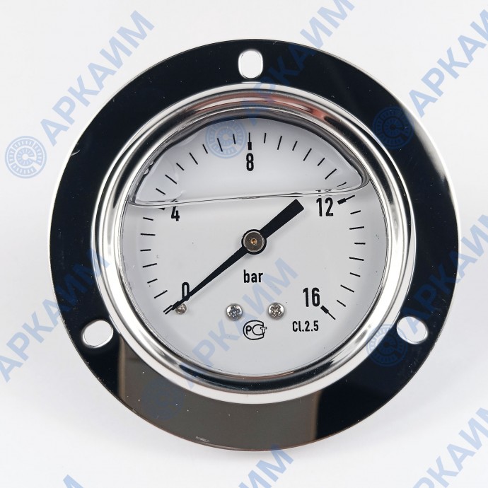 Манометр виброустойчивый YN63Z 0/16 на 16 бар, ⌀ 63 мм, G 1/4" фланцевый, глицериновый