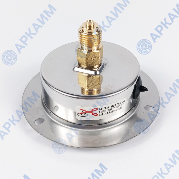 Манометр YN63Z 0/16 деформационный с трубчатой пружиной, заполненный глицерином. Его тип фланцевый - конструкция предполагает наличие фланца для крепления манометра в корпусе оборудования или удобного монтажа на приборной панели. Выход присоединительного штуцера расположен на одной оси с манометром. Рассчитан на максимальное давление 16 бар и имеет номинальный диаметр 63 мм с наружной присоединительной резьбой штуцера G 1/4". У представленного манометра 1 шкала измерения в Бар (bar / черная шкала).