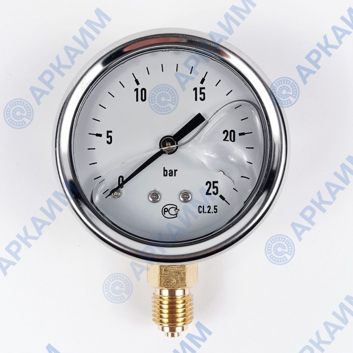 Манометр виброустойчивый YN63Z 0/25 на 25 бар, ⌀ 63 мм, G 1/4" радиальный, глицериновый