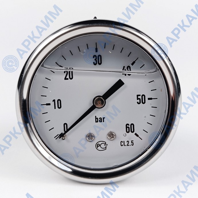 Манометр виброустойчивый YN63Z 0/60 на 60 бар, ⌀ 63 мм, G 1/4" осевой, глицериновый