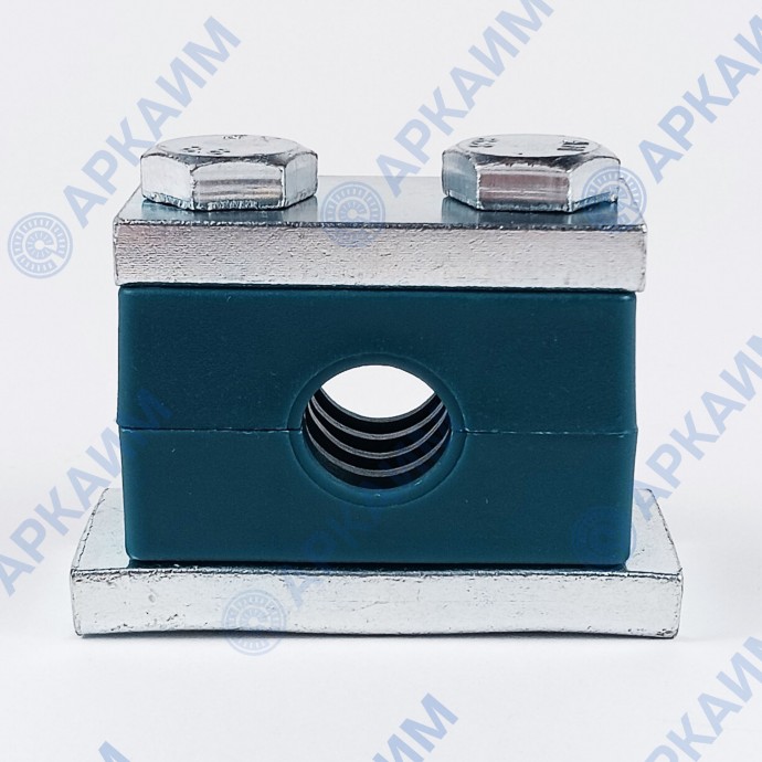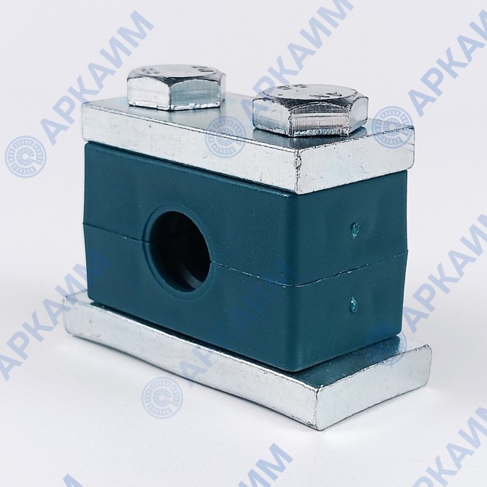 Конструкция зажима включает две полипропиленовые колодки (вставки), стягиваемые винтами М10 между двух металлических пластин, одна из которых приваривается к рабочей поверхности. Изделие в сборе образует отверстие под трубу с наружным диаметром 9,5 мм (3/8) и может эксплуатироваться при температуре от -30 до +90 °С.