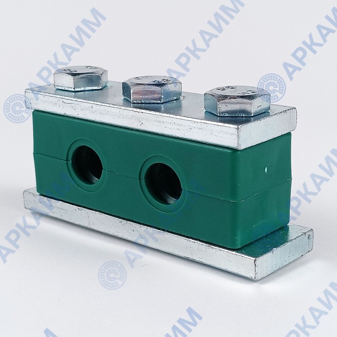 Зажим G12 сдвоенный ⌀ 14 мм / пластиковая колодка / усиленная приварная пластина с тремя болтами