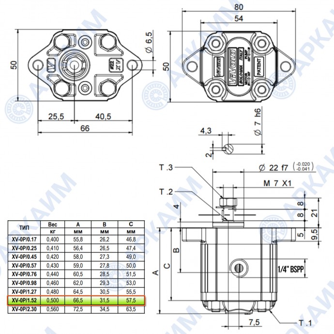 Гидронасос Vivoil X0P1101ABBA (XV 0P/1.52) 0 гр, 1.48 см3, до 8,43 л/мин, ¼ bsp, левое вращение