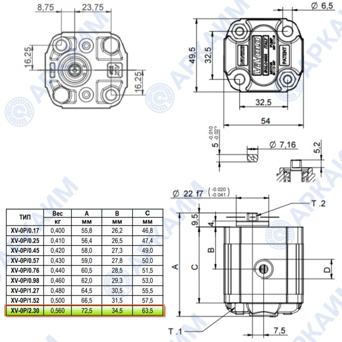 Гидронасос Vivoil X0P1311BBBA (XV 0P/2.30) 0 гр, 2.28 см3, до 10.83 л/мин, ¼ bsp, левое вращение