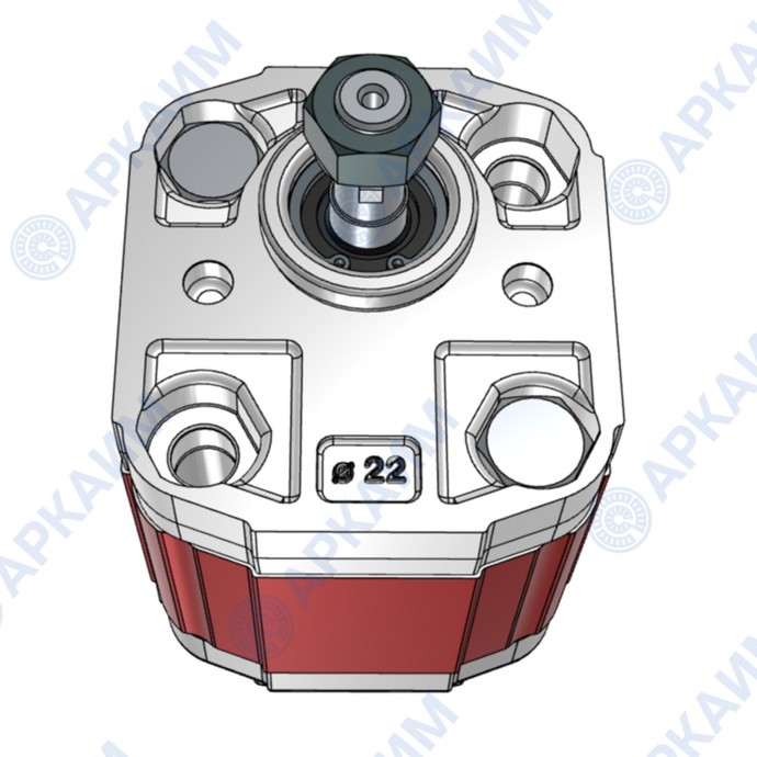 Корпус гидронасоса, включая фланец и крышку отлиты из усиленного алюминиевого сплава с повышенной стойкостью к механическим воздействиям. Шестерни с валом стальные, а уплотнения произведены из эластичного химически стойкого полимерного материала.
