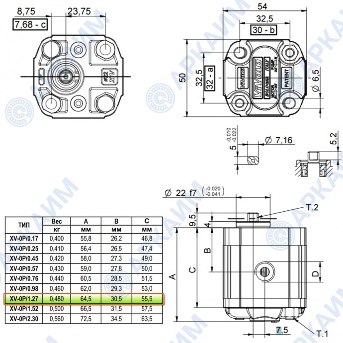 Гидронасос Vivoil X0P0921ABBBA (XV 0P/1.27) 0 гр, 1.26 см3, до 7,18 л/мин, ¼ bsp, левое вращение