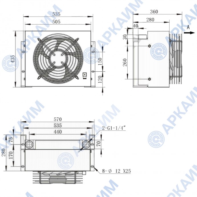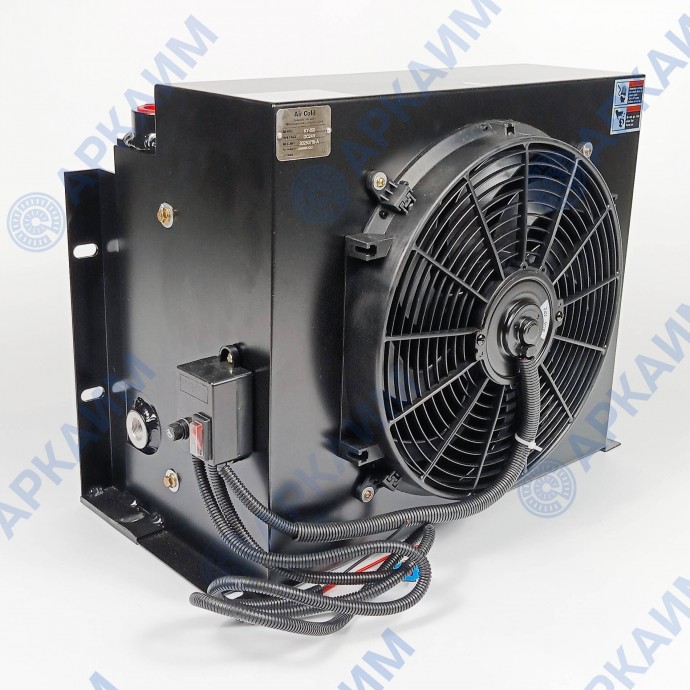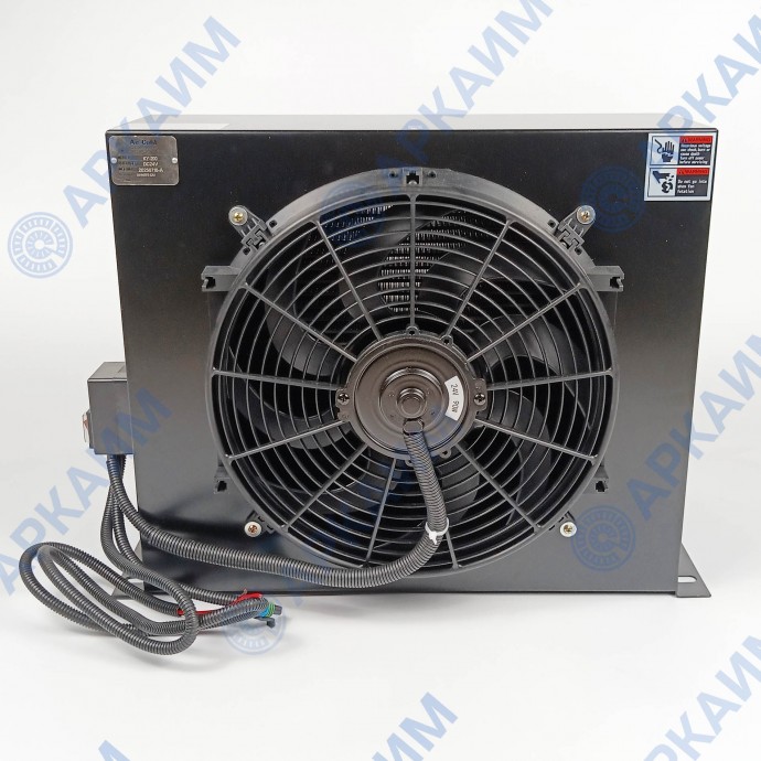 Маслоохладитель KY-200 (AH1470T-CA), 24В - это теплообменник, служащий для поддержания нормальной температуры рабочей жидкости в гидросистеме за счет эффективного отвода лишней тепловой энергии. Гидравлическое масло (или другая жидкость), проходя через обдуваемый радиатор, поступает обратно в систему охлажденной до нужной температуры.