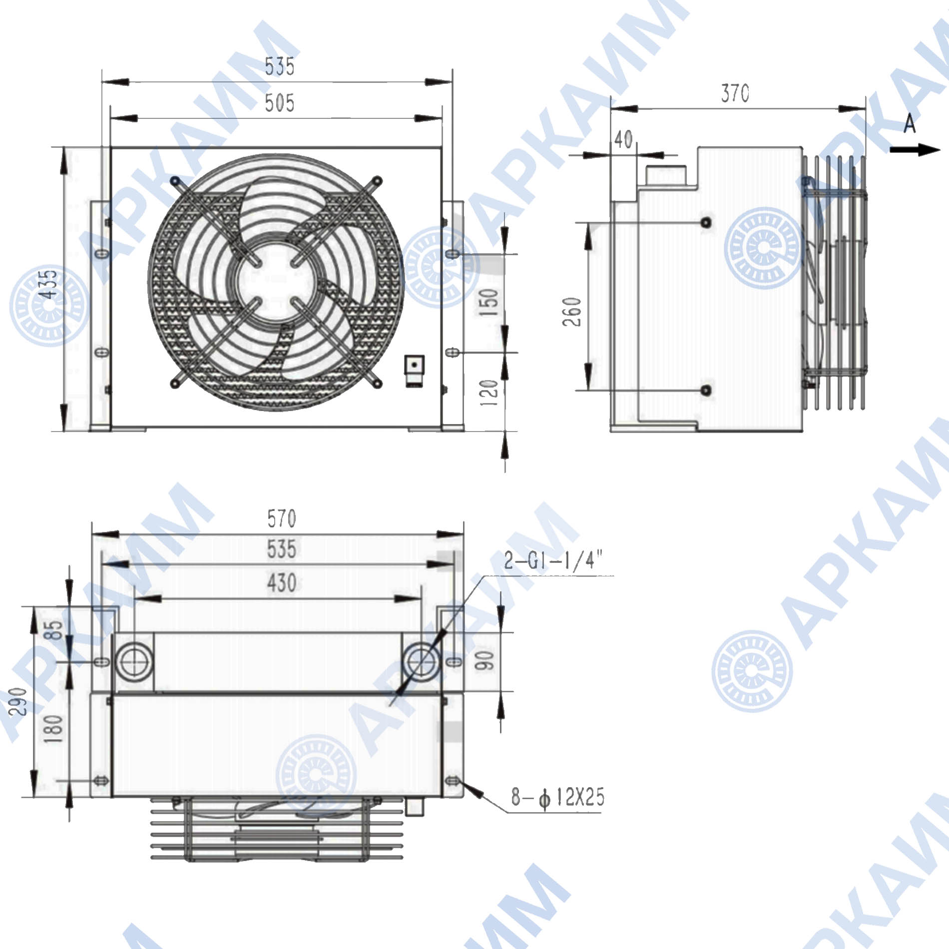 Маслоохладитель KY-250 (AH1490T-CA) 380В - это теплообменник, служащий для поддержания нормальной температуры рабочей жидкости в гидросистеме за счет эффективного отвода лишней тепловой энергии. Гидравлическое масло (или другая жидкость), проходя через обдуваемый радиатор, поступает обратно в систему охлажденной до нужной температуры.