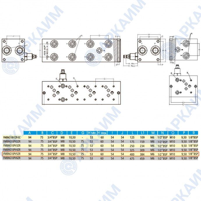 Плита монтажная FMBNG10PV5ZR на 5 модулей СЕТОР 5 / Ду 10 мм с предохранительным клапаном - это основа для соединения воедино модульной гидравлической аппаратуры, состоящей из гидрораспределителей, клапанов и других модулей соответствующего стандарта. Моноблочная алюминиевая конструкция обеспечивает простоту создания гидросистем без использования рукавов, труб и фитингов, снижая, таким образом, габаритные размеры до минимума и повышая надежность готового устройства.