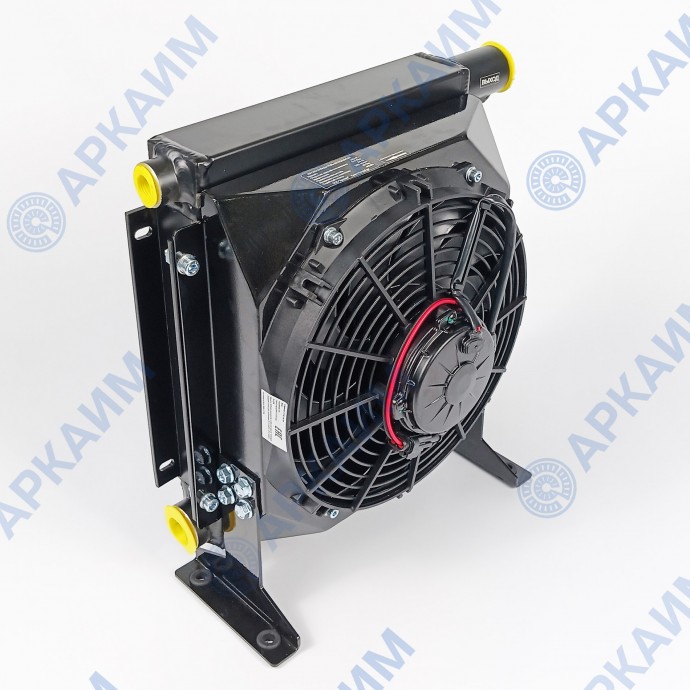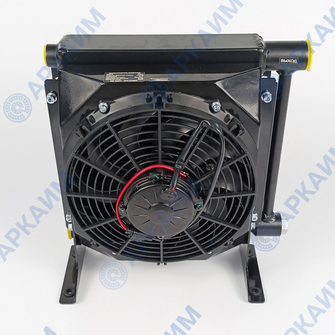 Вентилятор выбирается при заказе: на 12В или 24В, относительно бортового напряжения на мобильной спецтехнике. В комплекте поставляется устройство плавного пуска вентилятора для разгрузки электросети и продления срока службы электромотора. Цикличность работы вентилятора задает термостат, настроенный на пуск при 60 °С, отключение при 50-55 °С.