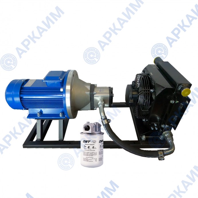 Основу конструкции составляет маслоохладитель МО1, установленный на одной станине с насосной станцией, с которой соединен рукавом. Гидравлический шестеренный насос 2 гр. приводится в действие от электродвигателя, подключенного соосно через колокол. Насосная станция всасывает масло и подает на вход радиатора, который обдувается вентилятором с автозапуском по предельной температуре. Выход радиатора подключён к гидробаку охлаждаемой гидростанции: таким образом происходит принудительная автономная циркуляция рабочей жидкости через теплообменник.