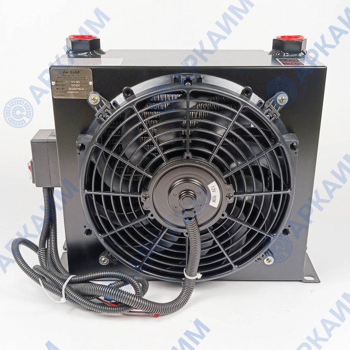Маслоохладитель KY-120, 1 - это теплообменник, служащий для поддержания нормальной температуры рабочей жидкости в гидросистеме за счет эффективного отвода лишней тепловой энергии. Гидравлическое масло (или другая жидкость), проходя через обдуваемый радиатор, поступает обратно в систему охлажденной до нужной температуры.