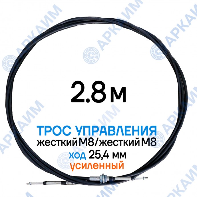 Трос дистанционного управления 2,8 м, усиленная серия SU-M, жесткий М8 / жесткий М8, ход 25,4 мм, аналог SU-M-TT-025-02800 Walvoil (Китай)
