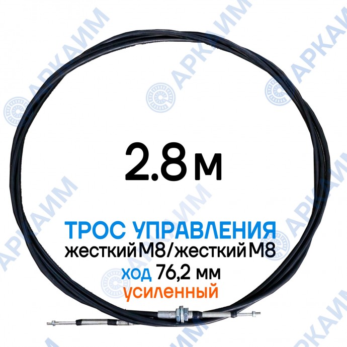 Трос управления 2,8 м, усиленная серия SU-M, жесткий М8 / жесткий М8, ход 76,2 мм, аналог SU-M-TT-075-02800 Walvoil (Китай)
