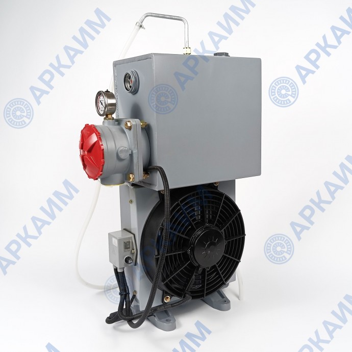 Цикличность работы вентилятора задает установленный термостат. Модель МО2Б18 позволяет охлаждать поток жидкости до 100 л/м и запитывается от 12В либо 24В (выбор происходит на этапе заказа).