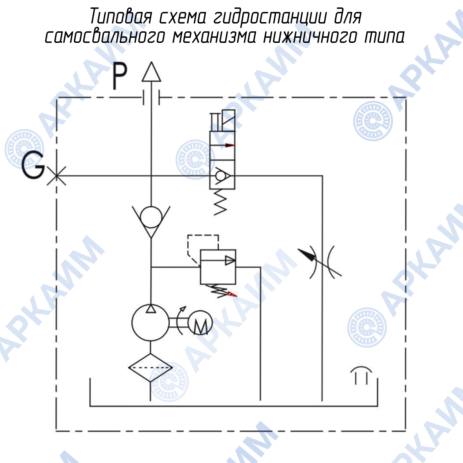 Особенность данной мини гидростанции для цилиндра кузова самосвала установки в том, что она работают на выдвижение гидроцилиндра и удержание нагрузки. Опускание происходит под действием гравитации (открывается электромагнитный клапан, электродвигатель, при этом, не включается).