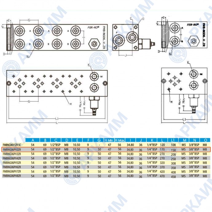 Плита FMBNG06PV2ZR на 2 модуля CETOP 3 / Ду 6 мм с предохранительным клапаном