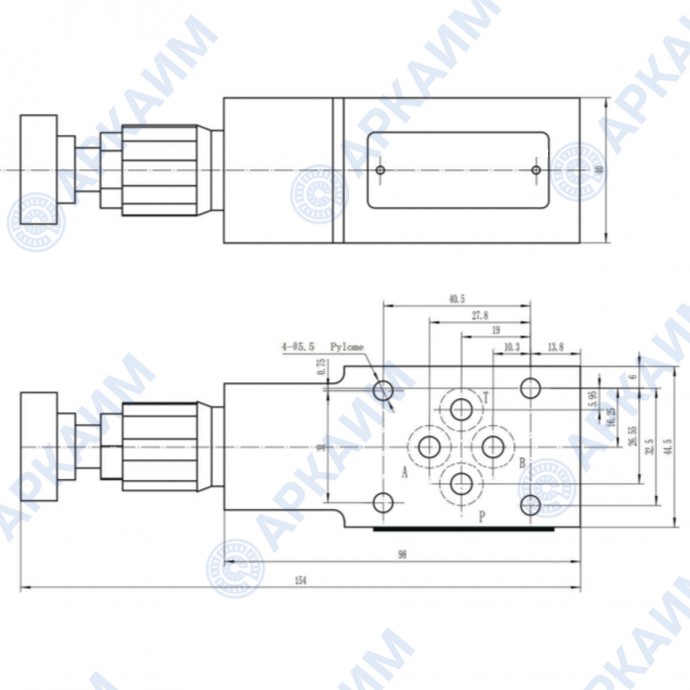 Схема модульного клапана ZPB6VA подразумевает, что клапан встроен в линию А и при превышении давлении на этой линии, рабочая жидкость будет идти на слив в линию Т, связанную с баком.
