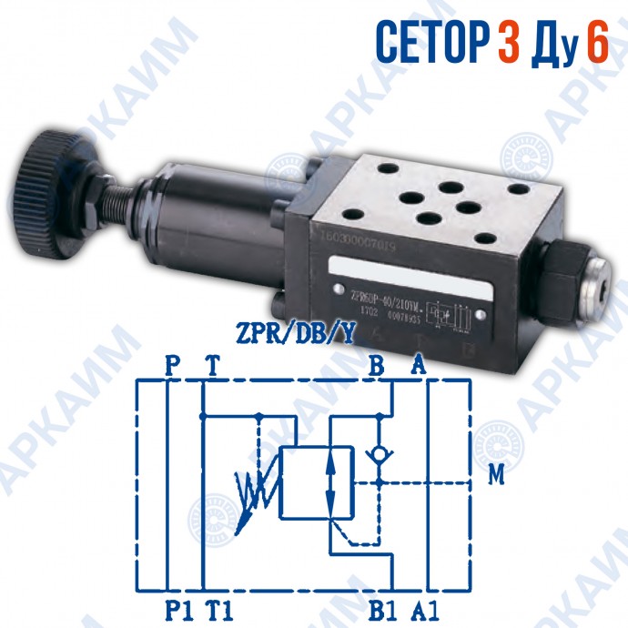 Редукционный клапан ZPR6DBY CETOP 3 / Ду 6 мм это гидравлический компонент сборки модульного монтажа, который служит для поддержания постоянного пониженного давления в линии после этого клапана. Редуцирование (снижение) входного (первичного) давления или поддержание выходного (вторичного) давления достигается настройкой клапана, которая ниже, чем возможные изменения давления в главной системе циркуляции. Является полным аналогом клапана отечественного производства КРМ 6/3 модульного исполнения, по техническим характеристикам и размерам.