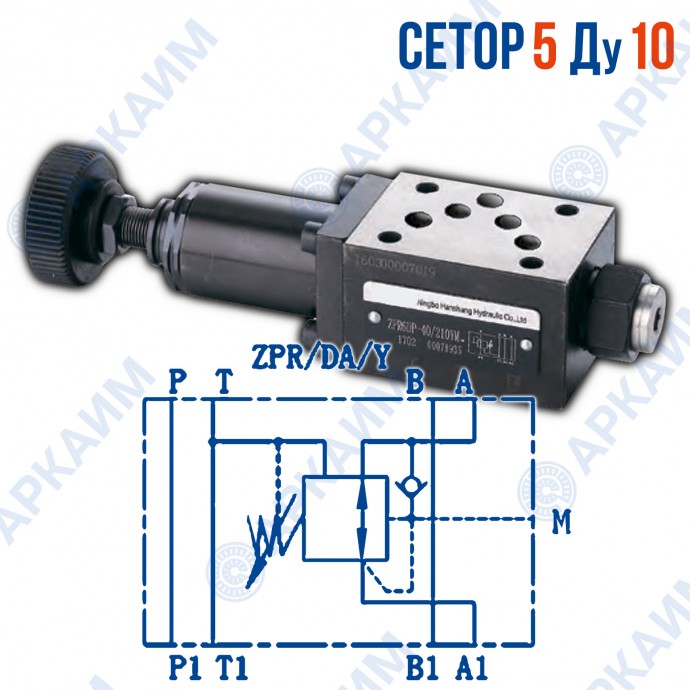 Редукционный клапан ZPR10DAY CETOP 5 / Ду 10 мм это гидравлический компонент сборки модульного монтажа, который служит для поддержания постоянного пониженного давления в линии после этого клапана. Редуцирование (снижение) входного (первичного) давления или поддержание выходного (вторичного) давления достигается настройкой клапана, которая ниже, чем возможные изменения давления в главной системе циркуляции. Является полным аналогом клапана отечественного производства КРМ 10/3 модульного исполнения, по техническим характеристикам и размерам.