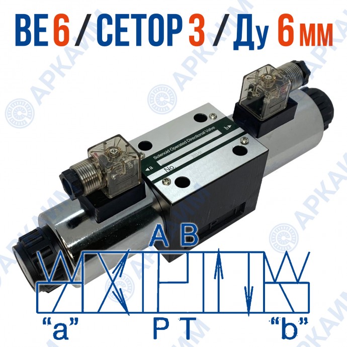Распределитель ВЕ 6 24 В220 – компонент гидросистемы модульного монтажа, используемый для управления потоком рабочей жидкости, путем переключения выходов подключенных питающих линий. Конструкция изделия включает надежный золотниковый механизм и управляющие электромагнитные катушки с коннекторами.